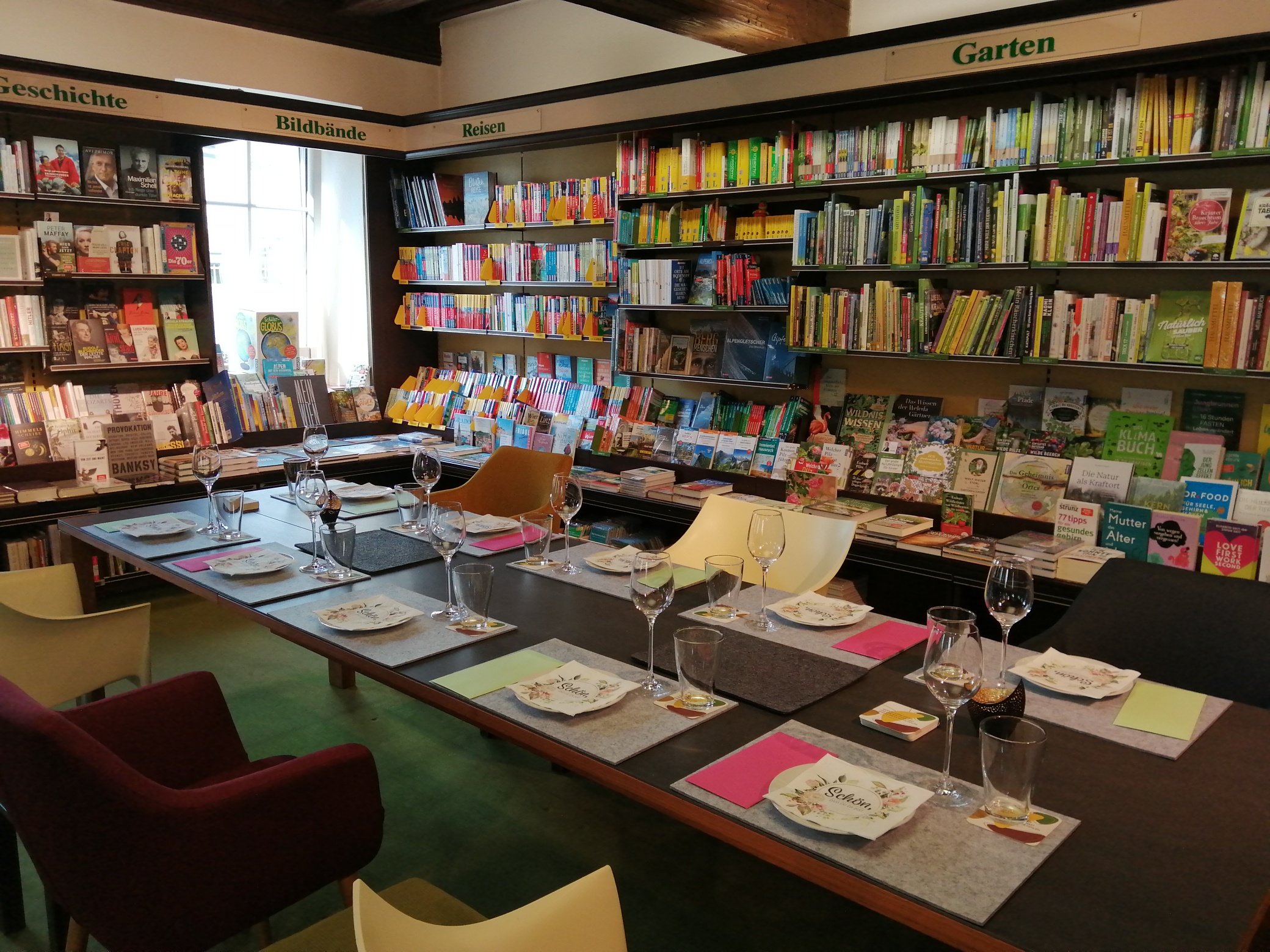 Unter dem Motto „BUCHGENUSS NACH LADENSCHLUSS“ stellen wir Ihnen unsere Buchhandlung zur Verfügung. Ob mit Ihrer Familie, Verwandten oder Bekannten, mit Ihren ArbeitskollegInnen oder mit Ihrer Leserunde … buchen Sie einfach bei uns Ihren Abend. Ab ca. 18.30 Uhr steht Ihnen die Buchhandlung zur Verfügung. Wenn gewünscht starten wir mit einer kleinen Einführung von persönlichen Buchtipps unserer aktuelle Lieblingsbücher und danach dürfen Sie rund 2,5 bis 3 Stunden schmökern, neue Bücher entdecken, mit Ihren Freunden zusammen sitzen und vor allem einen besonderen Abend erleben!