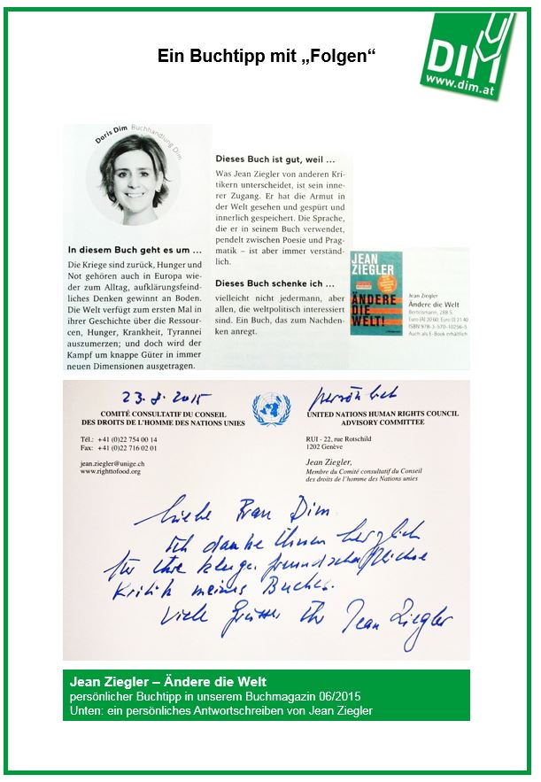 Der renommierte Autor und Wirtschaftsforcher Jean Marc Ziegler hat sich die Zeit genommen, um auf meine Rezension in unserem Büchermagazin zu reagieren … – Das ehrt mich sehr 😉